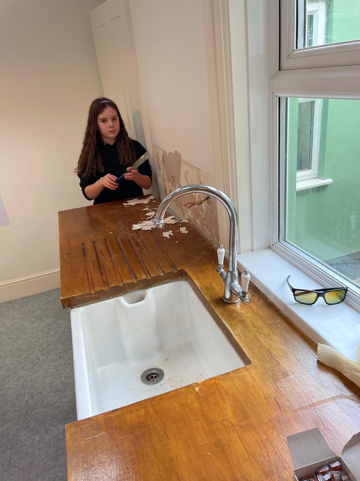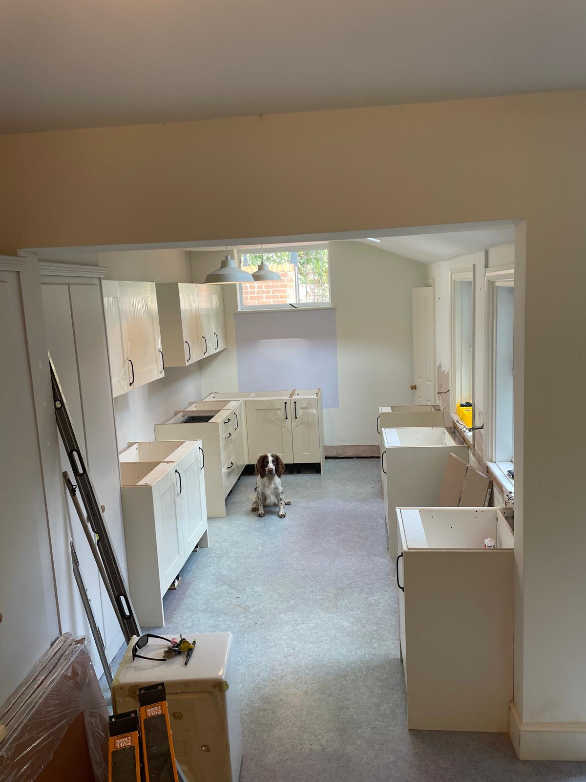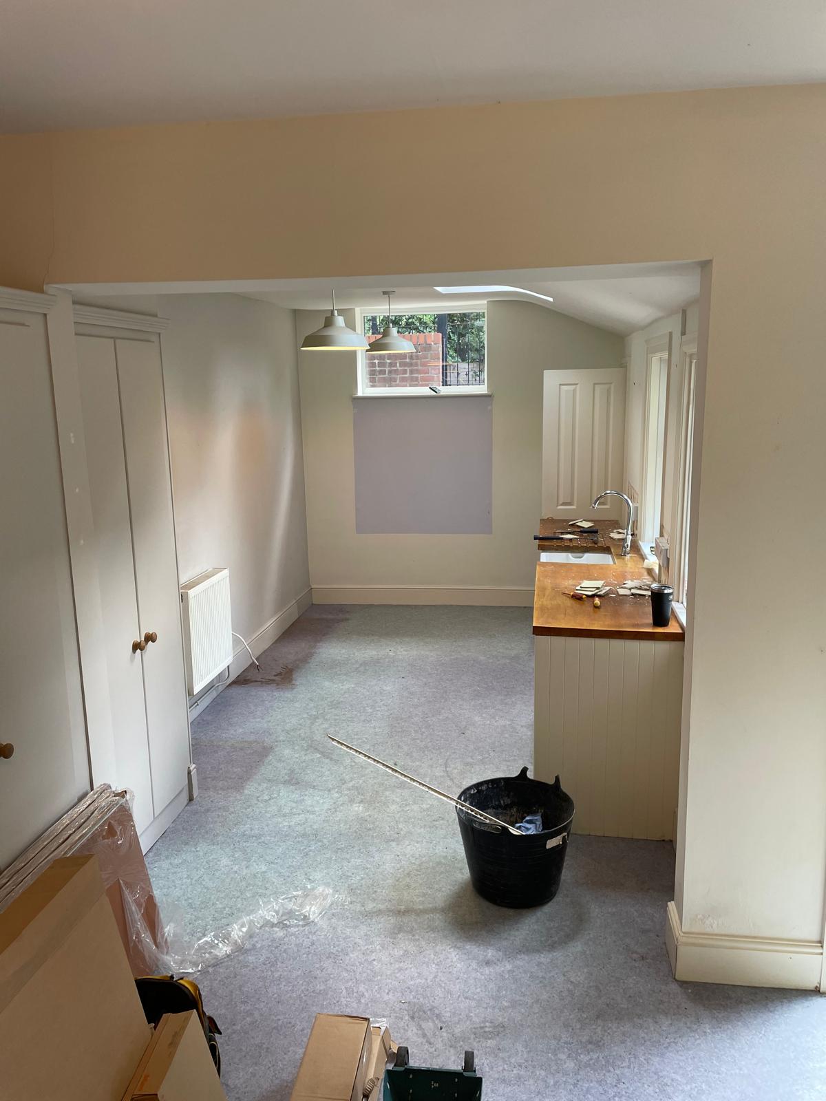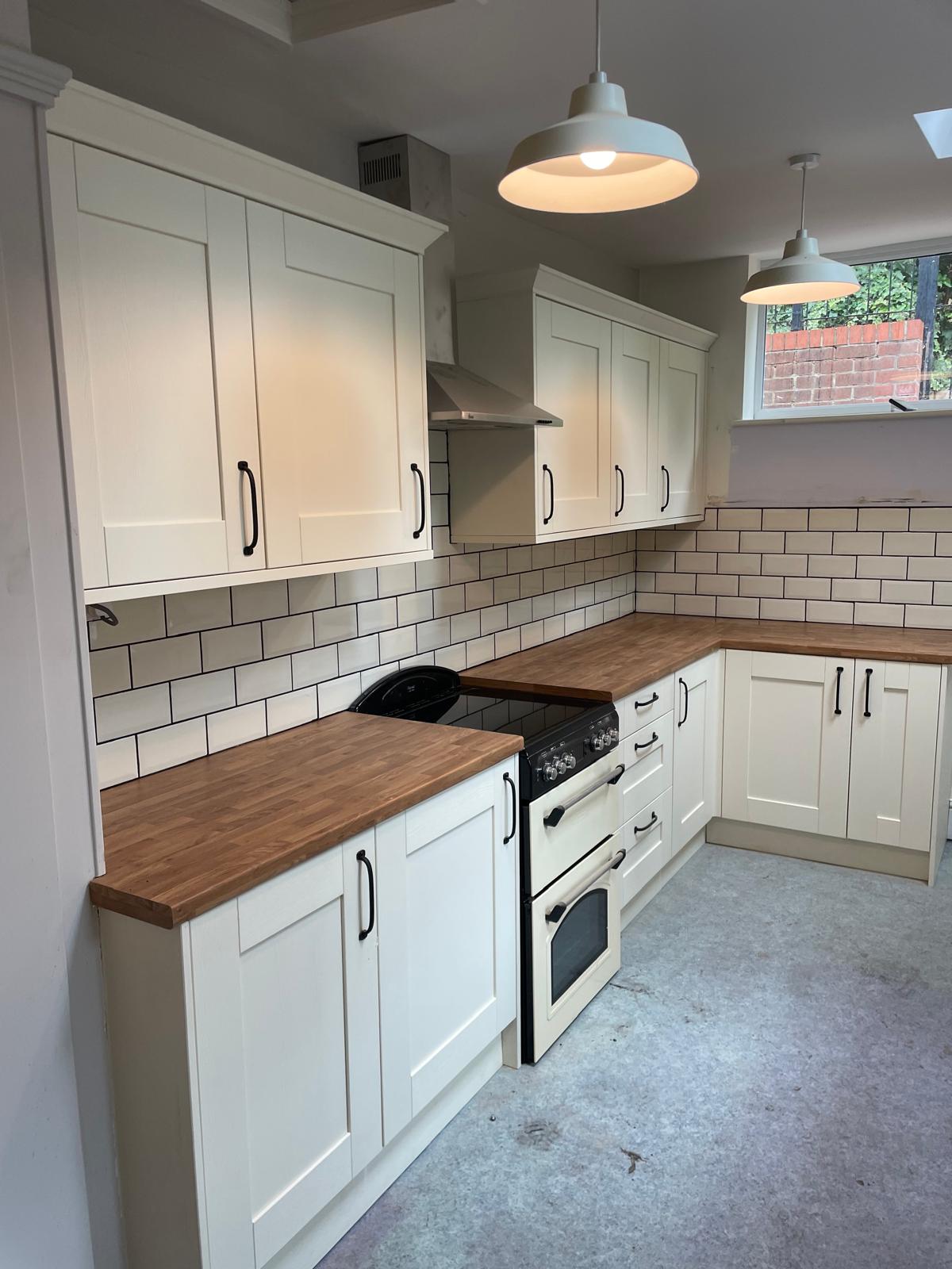 Full kitchen rip out. New kitchen fitted, tiled splash back and a couple of additional sockets added.