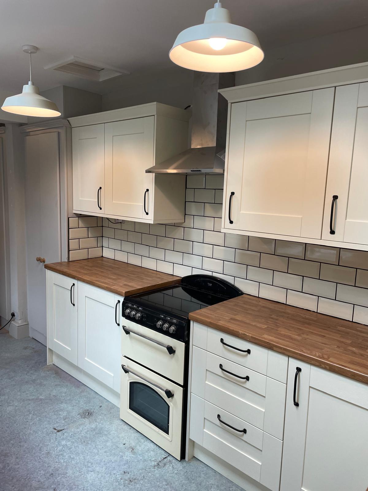 Full kitchen rip out. New kitchen fitted, tiled splash back and a couple of additional sockets added.