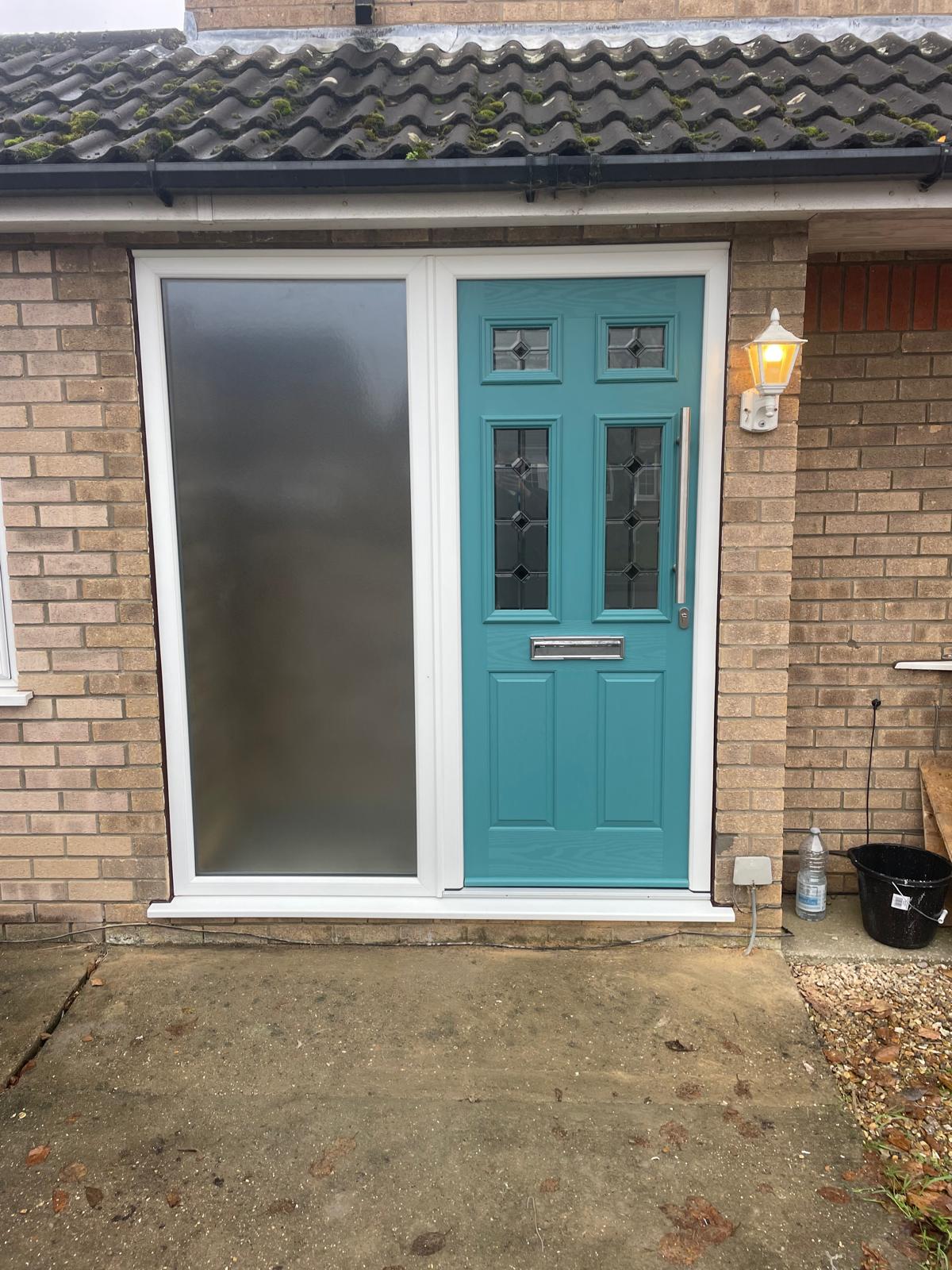 Front door removed. Porch floor broken out and relaid creating a level disabled access into the house. New internal door and flooring fitted. New front door and side screen fitted. North Hykeham